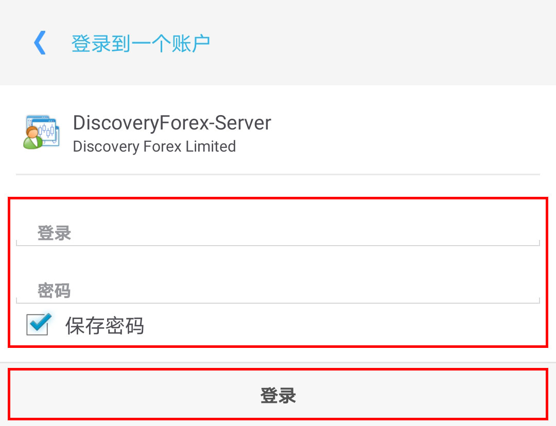 搜索 Discovery 并选择与您的帐号关联的“Discovery Forex-Server”(不是虚拟服务器)。